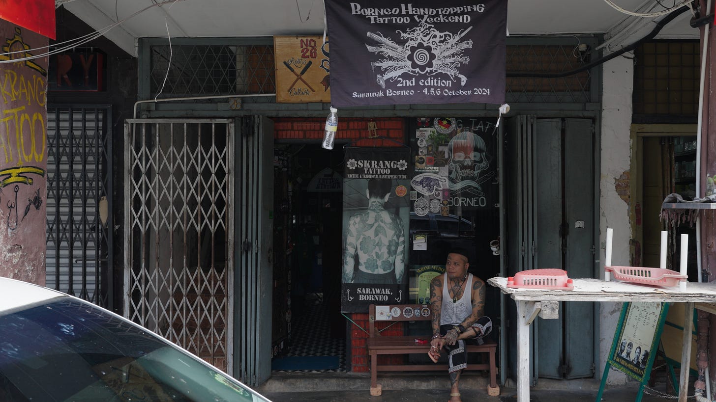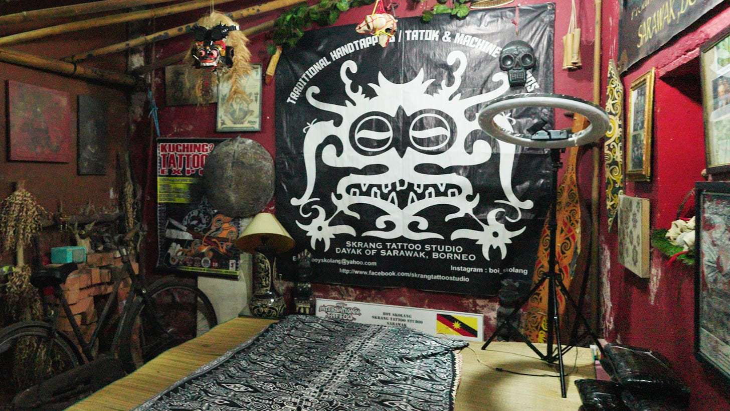 That same morning after meeting C and K, I decided to try my luck finding Boi Skrang, a hand-tapping tattoo artist known around Sarawak for his flamboyant energy and uncompromising technique. I didn’t have an appointment. Just a name, an address, and a camera.